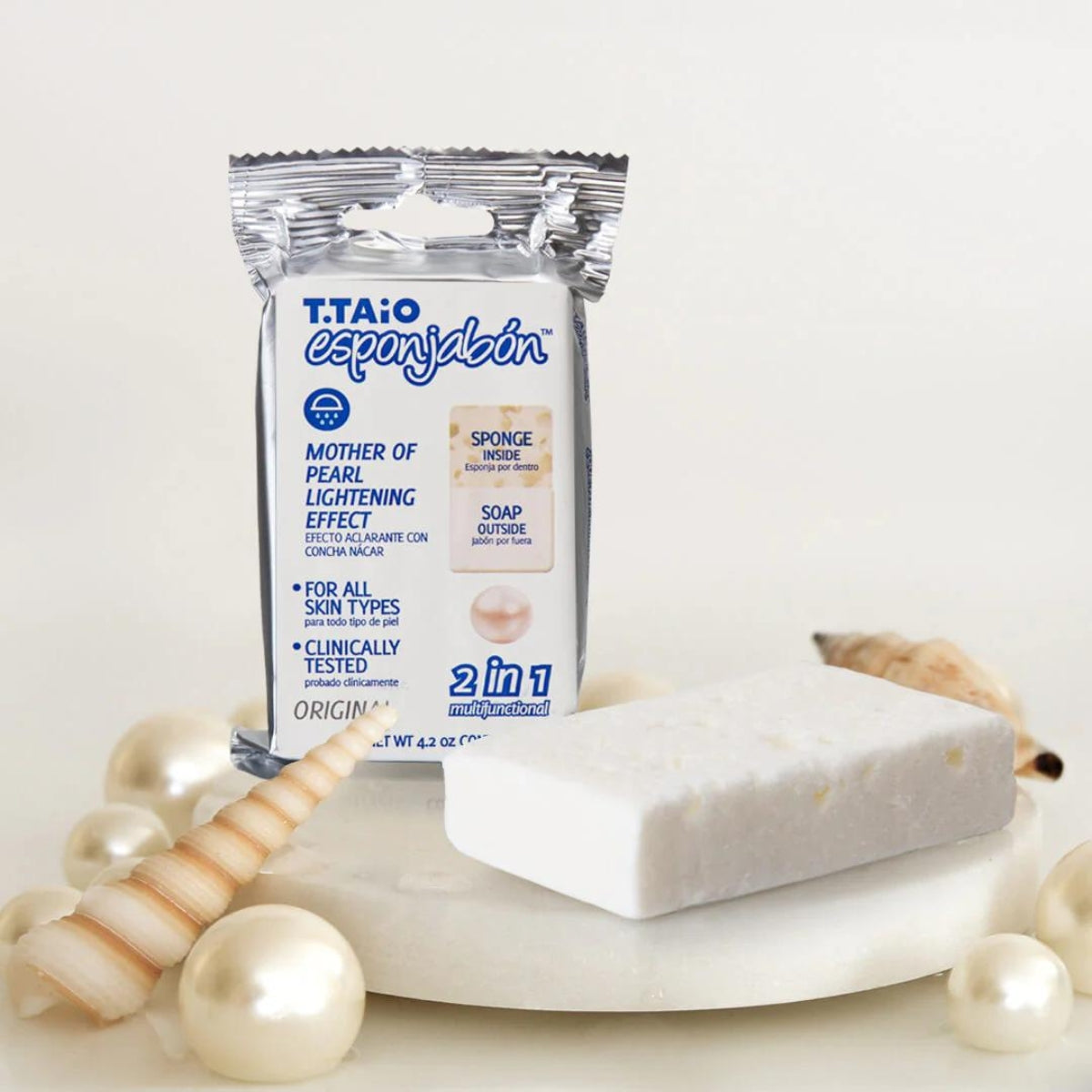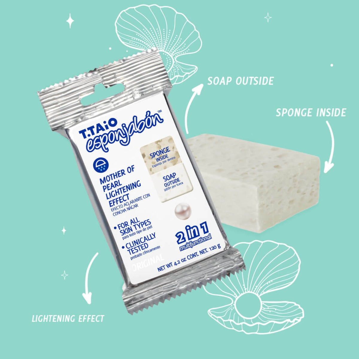 SOAP INFUSED SPONGE WITH MOTHER-OF-PEARL LIGHTENING EFFECT