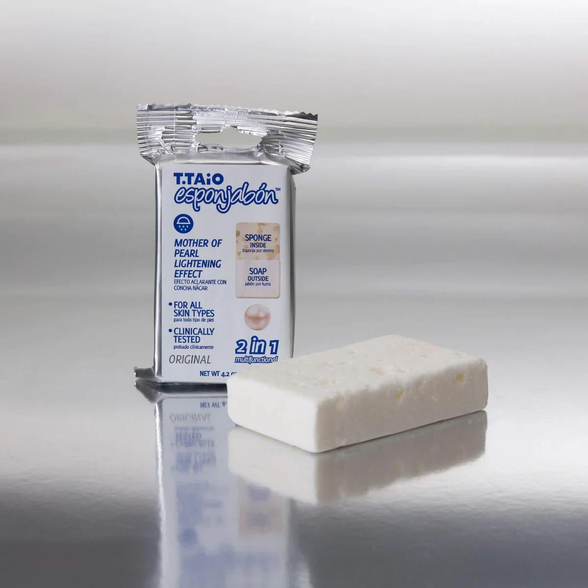 Keep your skin tone even with our 2-in-1 soap with an integrated sponge, formulated with mother-of-pearl for daily use.